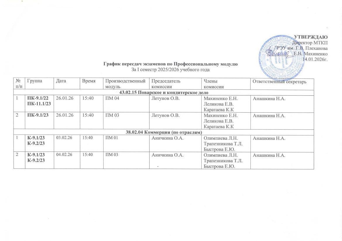 График пересдач по дисциплинам и МДК за нечетный семестр